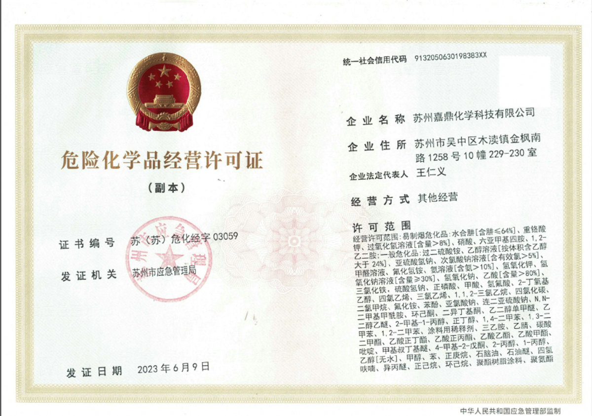 蘇州嘉鼎化學科技有限公司是一家專業(yè)高效、產(chǎn)品齊全的大型危險化學品供應鏈專業(yè)解決方案提供商,系蘇州化工行業(yè)協(xié)會理事單位,至今已有近十余年歷史。公司自有正規(guī)危險品倉庫、危險品車隊、化驗室、并能提供第三方檢測機構報告,可為終端使用工廠或貿易商提供有特殊要求化學品如中性標簽、全新各類規(guī)格包裝、混兌、阻燃、無味、安全、環(huán)保、定點危險品車配送等大部分公司不可滿足之服務。貴司只管接單,余下事務交由我們做。我司擁有華東地區(qū)多家大型終端工廠和一線品牌代理商配套合作服務經(jīng)驗,系華東地區(qū)化學品經(jīng)營規(guī)模化公司之一。誠信、專業(yè)、高效是我們的經(jīng)營理念,合作共贏是我們的終極目標。 我們產(chǎn)品涵蓋有機溶劑、無機酸堿鹽、實...